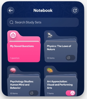 After solving a question, click the bookmark button to save it directly to your notebook for easy access and future review. This feature helps ensure that important questions and their solutions are always available, reinforcing your learning and helping you prepare more effectively.