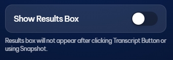 Normally, when you press the Transcript Button, a window displays the results. However, if this feature is enabled, pressing the button will no longer bring up the Results Window.